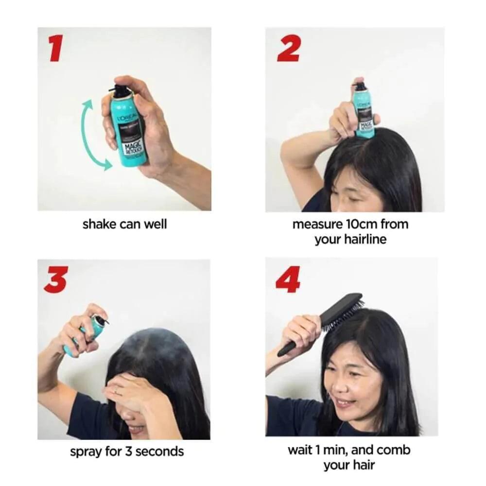 Need to look fabulous fast? L’Oreal Paris Magic Retouch is the quickest way to cover grey. In just 3 seconds grey roots are concealed with this light-weight, quick dry formula, leaving no smudging or sticky residue when dry. One application will last until your next shampoo, plus it’s ammonia-free, peroxide-free, and contains no synthetic dyes.