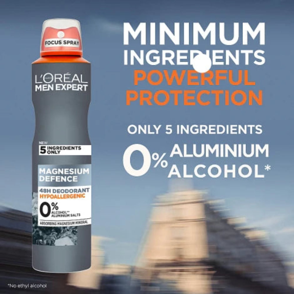 The L'Oréal Men Expert Magnesium Defence Body Spray 250ml offers a refreshing and invigorating fragrance, combining the energizing properties of magnesium with a clean scent. Formulated with a hypoallergenic composition, this deodorant spray ensures 48-hour protection against sweat and body odor. Its alcohol-free formula is gentle on the skin, making it suitable for daily use.
