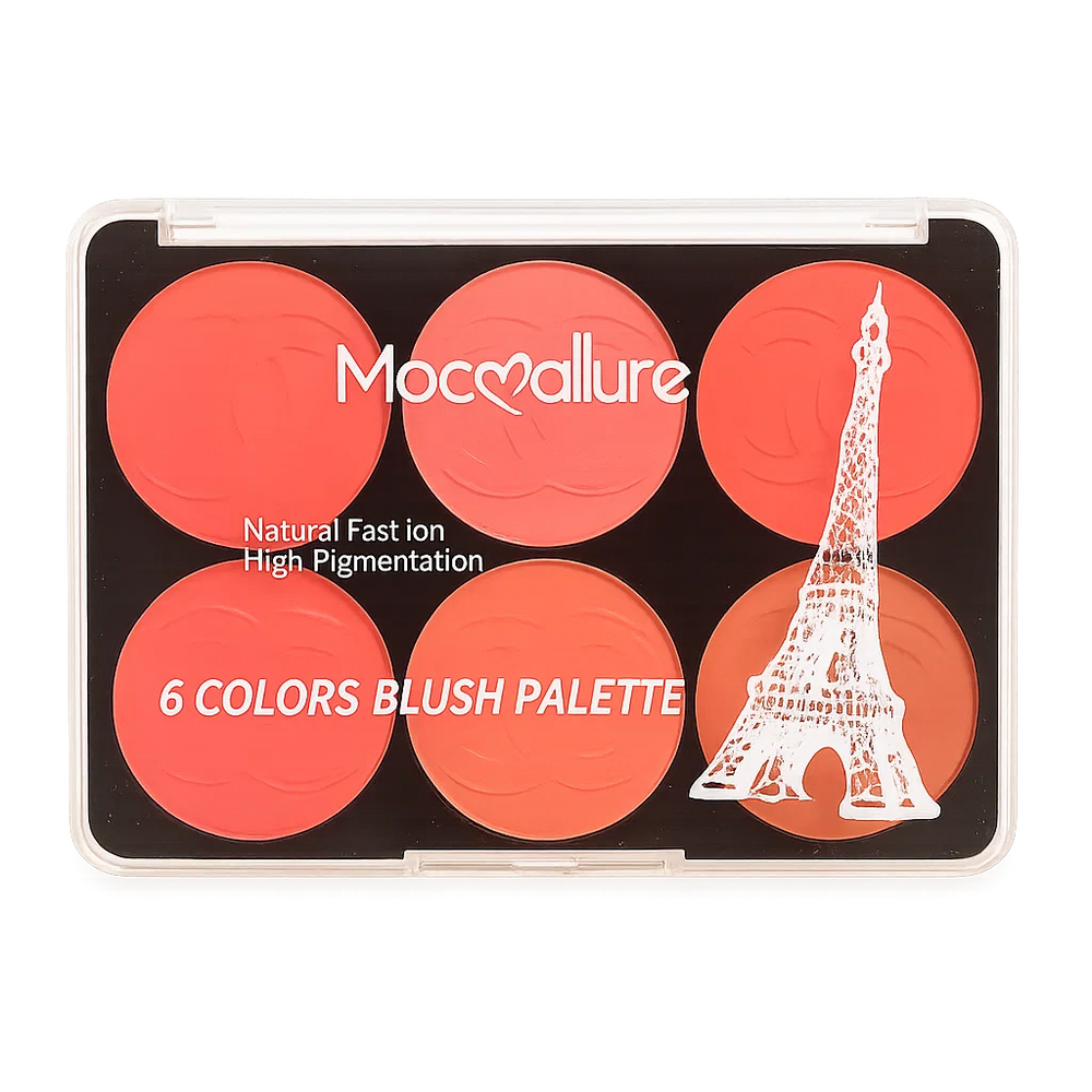 The Mocallure 6 Colors Blush Palette offers a selection of soft, blendable shades designed to complement all skin tones. With a mix of natural, rosy, and warm hues, this palette delivers smooth application and a radiant, healthy-looking glow suitable for both everyday wear and special occasions.