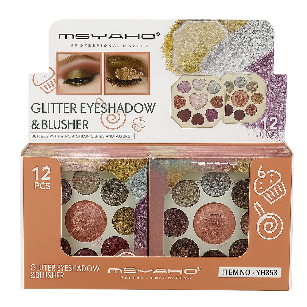 Get the perfect blend of sparkle and color with the MSYAHO Glitter Eyeshadow & Blusher duo. This multi-use product combines rich, shimmering eyeshadows with soft, pigmented blush tones—ideal for creating radiant day looks or bold, glam moments.