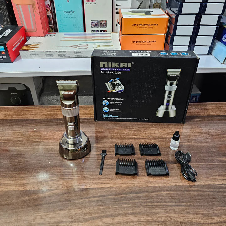 Elevate your grooming routine with the Nikai NK-2289 Rechargeable Hair Trimmer, a versatile and efficient tool designed for both professional barbers and home users. Whether you're looking to maintain a sharp beard, achieve a clean fade, or trim your hair with precision, this trimmer offers the performance and convenience you need.