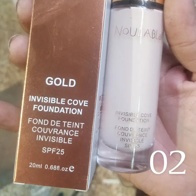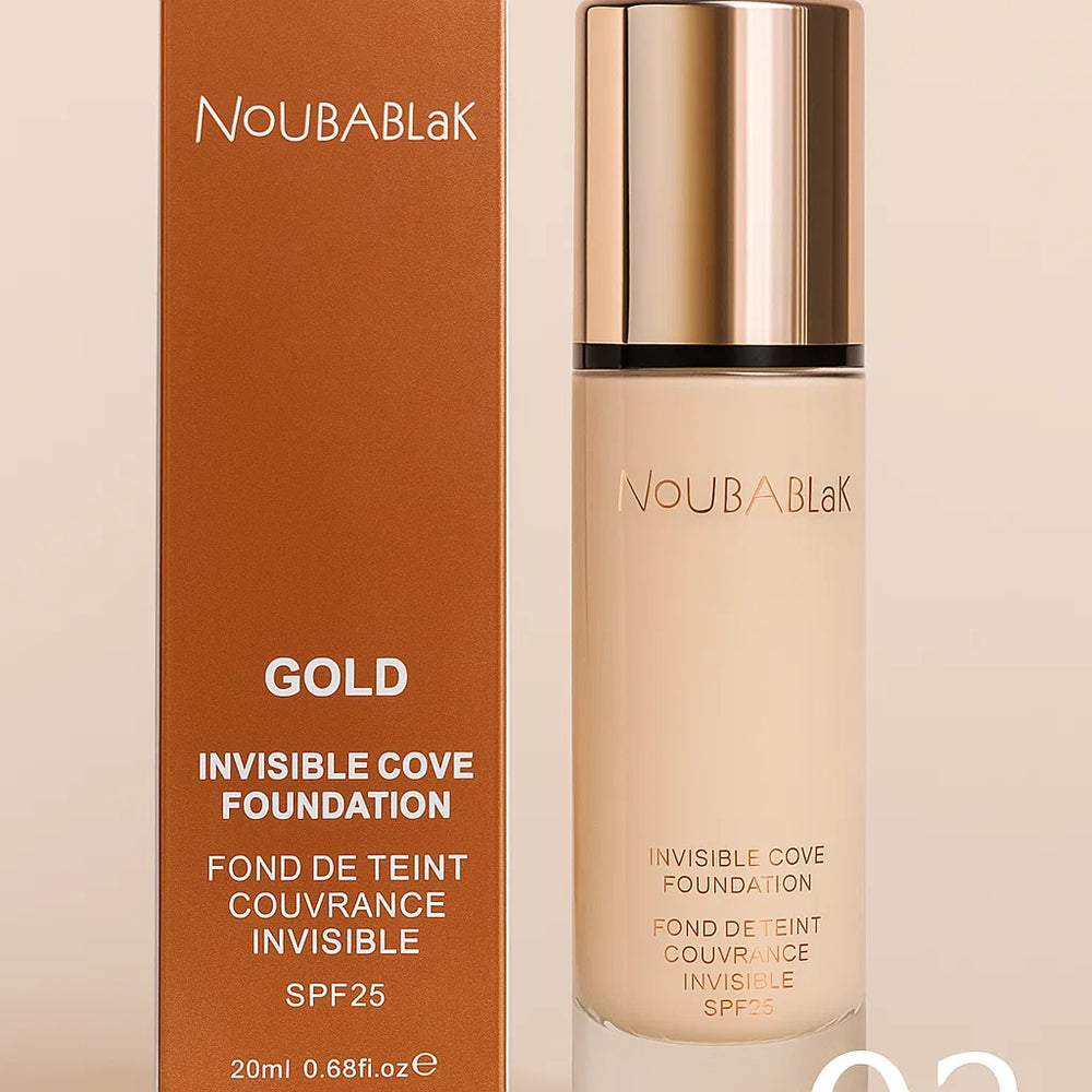 Achieve flawless, photo-ready skin with Nouba Blak Gold Invisible Cover Foundation SPF 25. This lightweight yet high-performance foundation melts seamlessly into the skin, delivering smooth, natural-looking coverage that feels weightless all day.