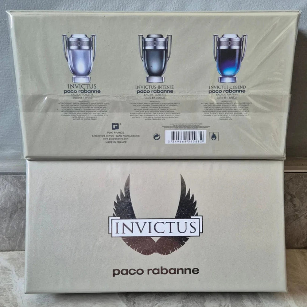 With its bold marine notes, grapefruit freshness, and woody ambergris base, Invictus is the ultimate masculine fragrance for the modern man. Ideal for gifting or personal use, this travel-friendly fragrance set combines style, convenience, and the unmistakable scent of Invictus.