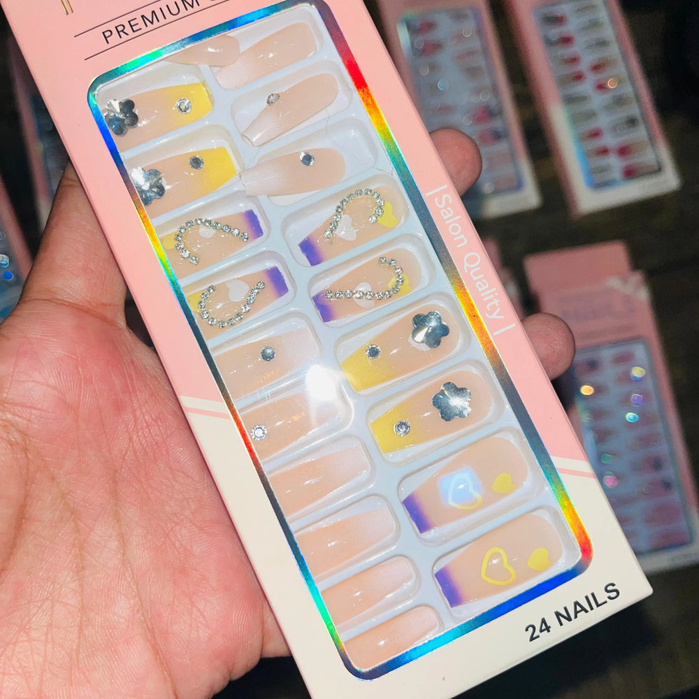 Enhance your nail game with our Professional Premium Series Artificial Nails! This set of 24 high-quality nails is perfect for achieving a professional and long-lasting look. Say goodbye to chipped or uneven nails and hello to salon-worthy results. Trust in our expertly crafted nails for the best results every time.
