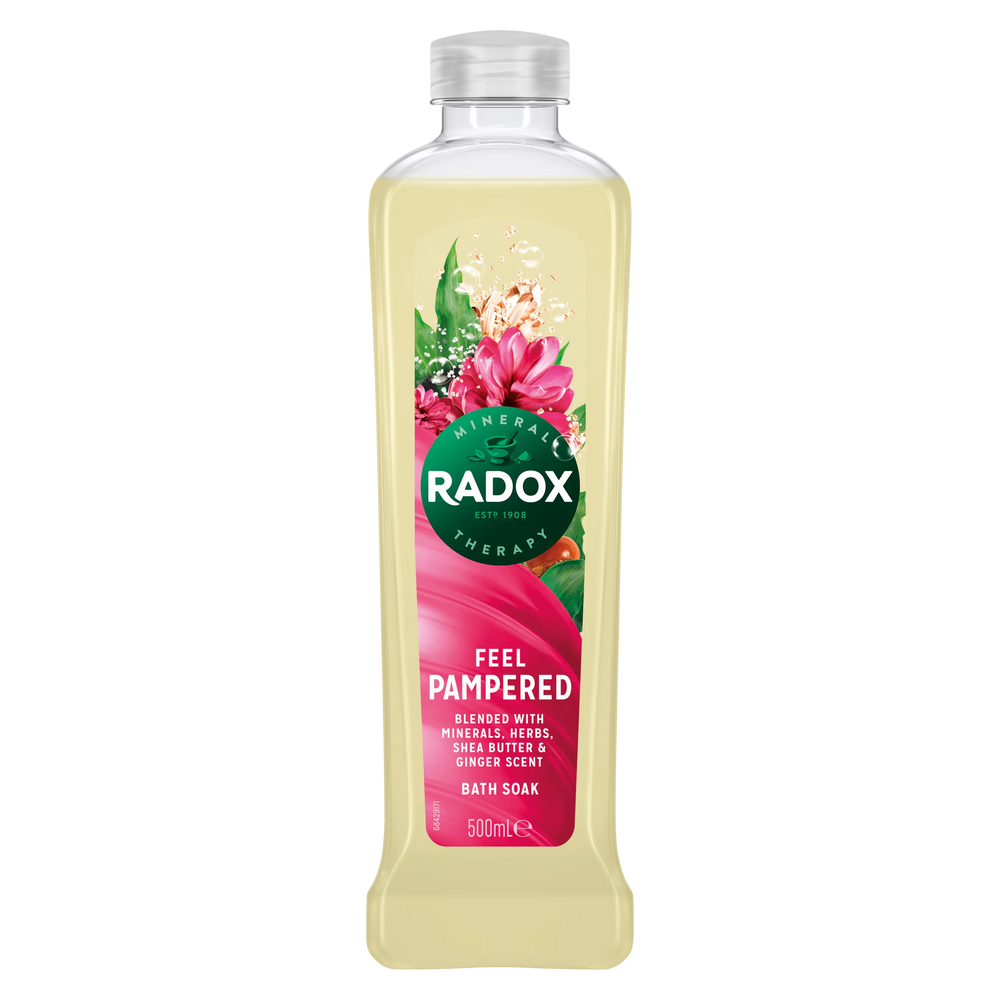 Radox Feel Pampered Bath Soak with Shea Butter & Ginger - 500ml is a revitalizing bath product designed to soothe tired, aching muscles and promote relaxation. Infused with natural ingredients, it offers a therapeutic bathing experience that helps ease tension and refresh the body.