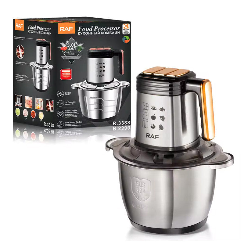 The RAF Electric Chopper R.8830 is a powerful and compact kitchen appliance designed to chop vegetables, fruits, nuts, meat, and more with ease. Equipped with sharp stainless steel blades and a strong motor, it delivers quick and consistent results, making meal prep faster and more convenient.