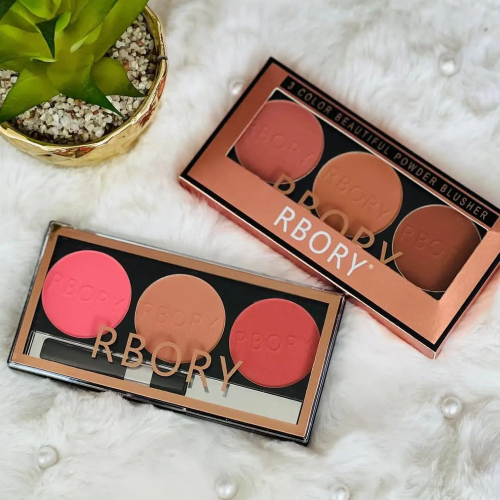 Elevate your makeup routine with the Rbory 3 Color Beautiful Powder Blusher Palette — your go-to for beautiful, healthy-looking cheeks every day!