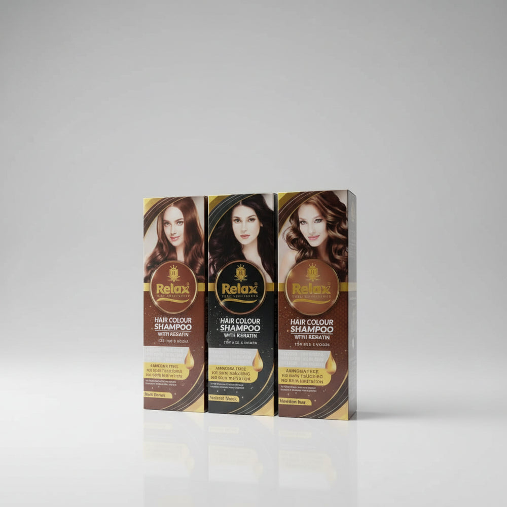 Transform your hair color experience with the Relax Hair Color Shampoo with Keratin. This "instant-dye" innovation is designed for those who want to refresh their look or cover greys without the long, chemical-heavy process of a salon visit. By infusing the formula with Keratin, it colors and repairs your hair simultaneously, leaving it stronger and shinier than traditional boxed dyes.