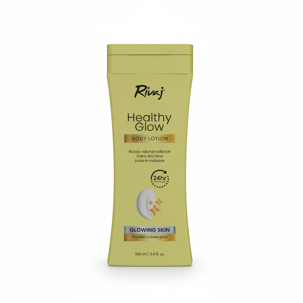 Smooth the Healthy Glow Body Lotion generously over your body, focusing on areas that need an extra boost of hydration. For optimal results, use daily after bathing.