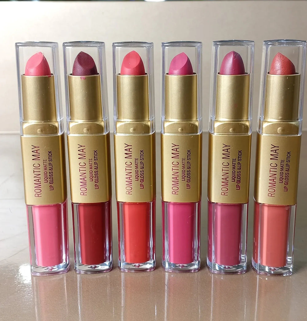 Get the best of both worlds with the Romantic May Professional 2-in-1 Lipstick with Gloss & Liquid Matte. This dual-ended lip essential combines a creamy matte liquid lipstick on one side and a high-shine gloss on the other, giving you versatile looks for any occasion. Whether you prefer a bold matte finish or a glossy shine, this 2-in-1 lipstick delivers rich pigmentation, long wear, and ultimate comfort.