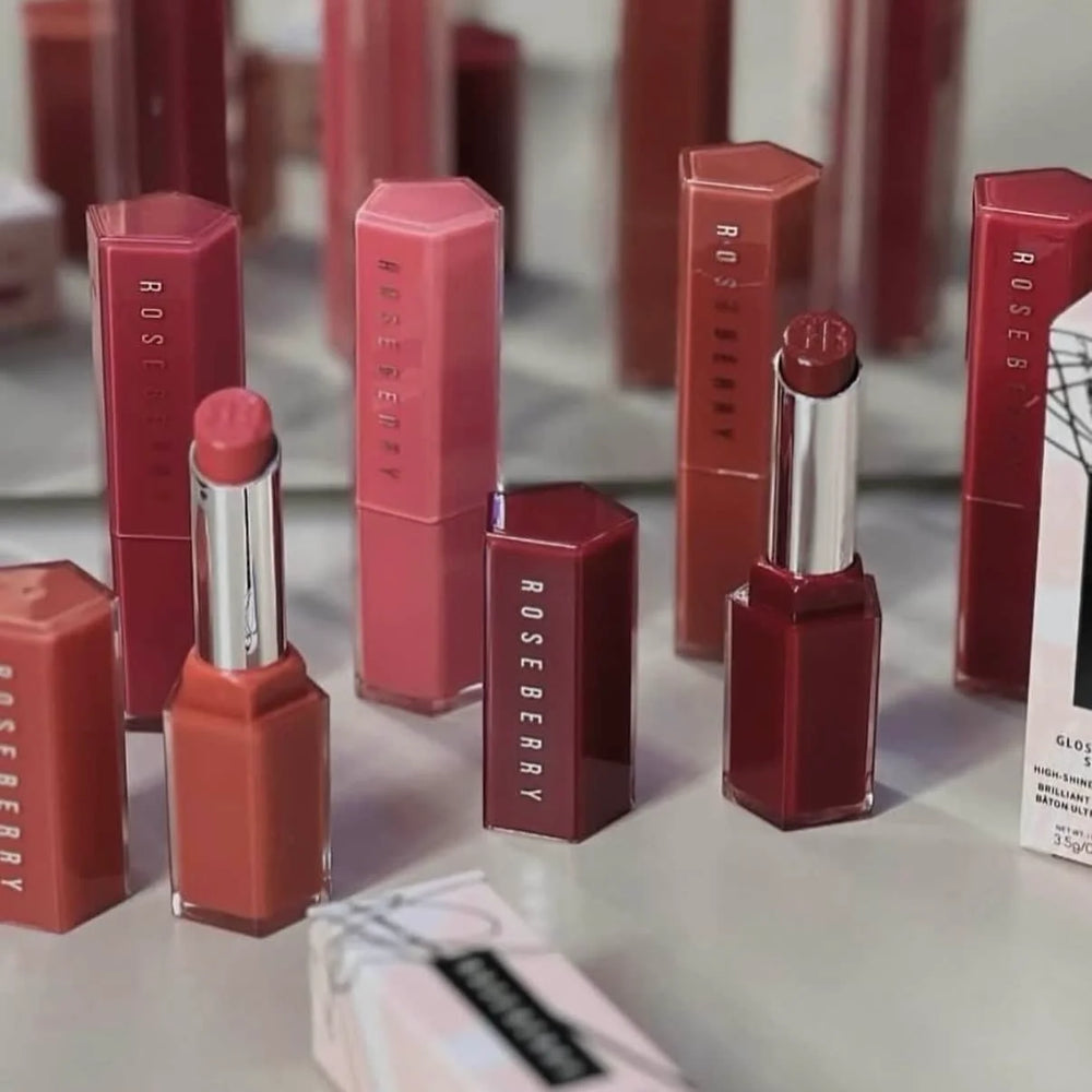 The ROSE BERRY Glossy Bomb Lipsticks are designed to deliver a potent combination of vibrant, high-impact color and a stunning, mirror-like glossy finish. These lipsticks offer the rich pigmentation of a traditional lipstick with the shine and comfort of a luxurious lip gloss.