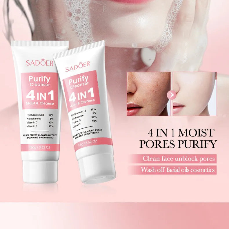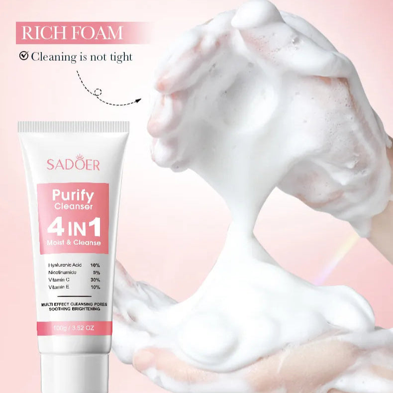 Give your skin a fresh start every day with SADOER 4 in 1 Whitening Brightening Facial Cleanser – 100ml, a multi-purpose skincare essential designed to cleanse, brighten, moisturize, and refresh. Enriched with effective whitening and nourishing ingredients, this cleanser removes dirt, excess oil, and impurities while helping your skin look clear, smooth, and naturally radiant.