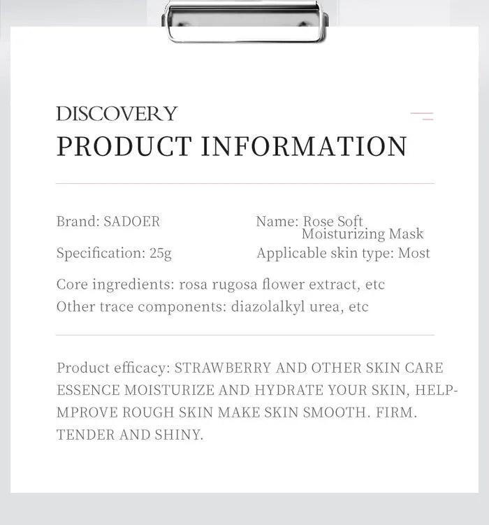 SADOER Botany and Fruits Skin Care Facial Mask can moisturize dry and dehydrated skin, moisturize and lock water, improve skin's hydration and gloss, make skin hydrated and plump, and spread elastic, tender, and beautiful skin.