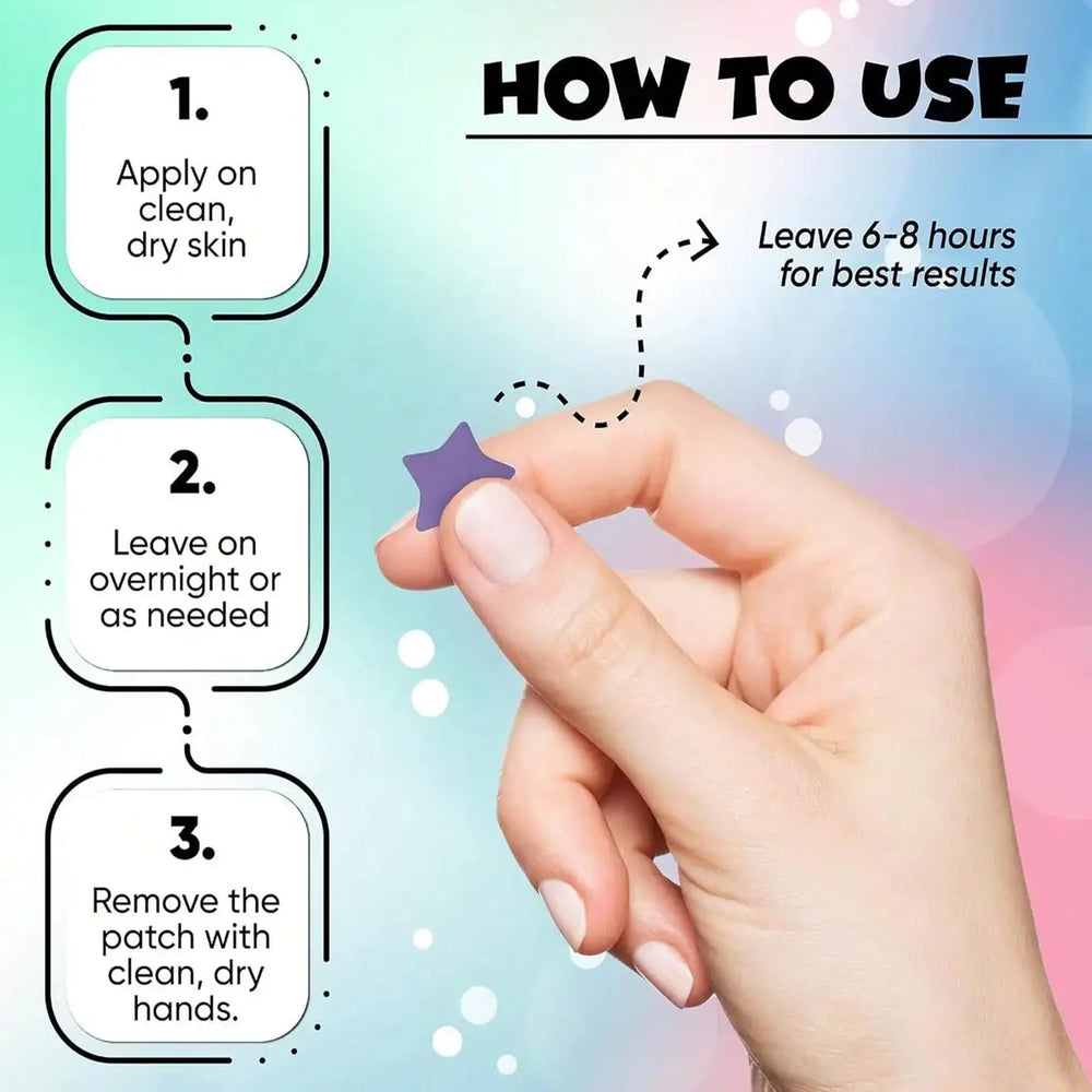 The SADOER Stars Pimple Patch is a pack of 40 colorful, star-shaped hydrocolloid patches designed to treat active blemishes discreetly while promoting faster healing. These patches help absorb excess fluid and oil from pimples, isolate the spot from external bacteria and picking, and support a calmer, clearer skin appearance.