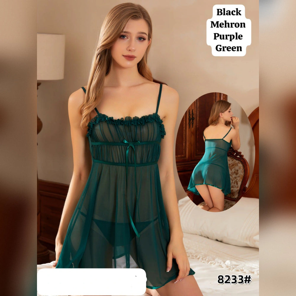 The Sheer Teal Lingerie Set – 8233 is a stylish and elegant intimatewear set crafted from soft, breathable mesh in a vibrant teal shade. Designed for comfort and confidence, it features delicate detailing, a flattering fit, and coordinated pieces that create a beautifully balanced and feminine look.