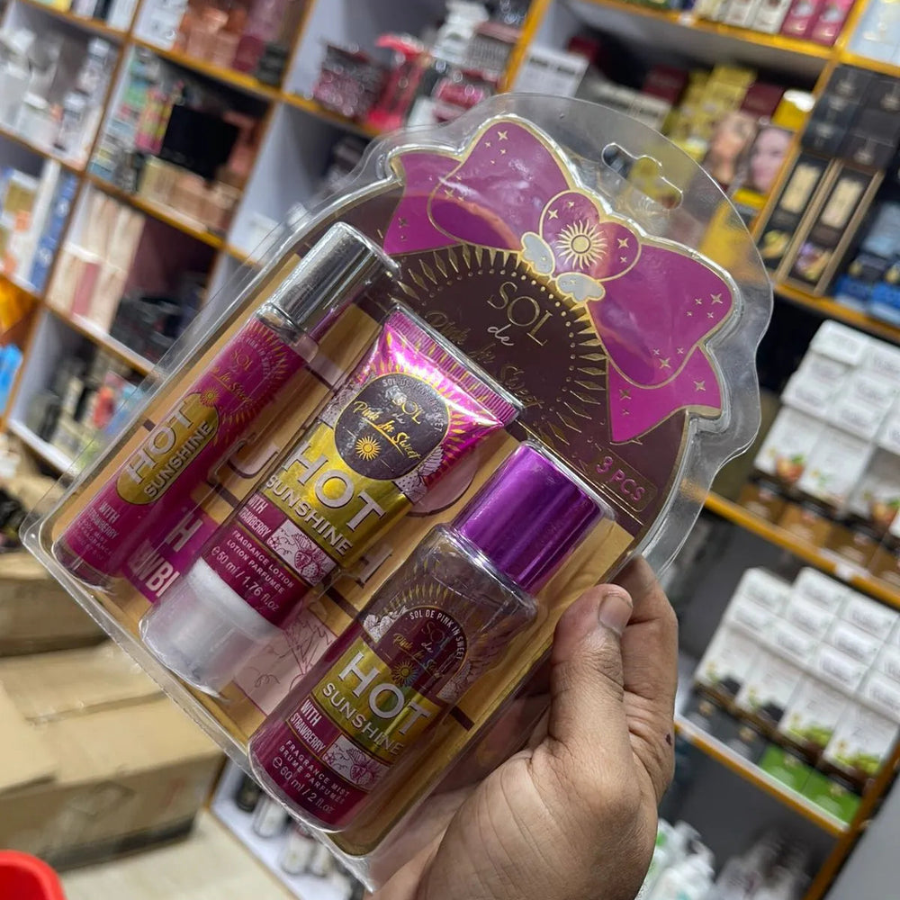 Experience the vibrant essence of sunshine with the Sol New Hot Sunshine Fragrance Set. This expertly crafted collection includes a refreshing body mist, a captivating perfume, and a nourishing lotion, each designed to layer seamlessly for a long-lasting, radiant scent. Perfect for daily use, this set enhances your natural allure while keeping your skin soft and hydrated. Embrace the warmth and energy of Sol’s signature fragrance to brighten your day with confidence and elegance.