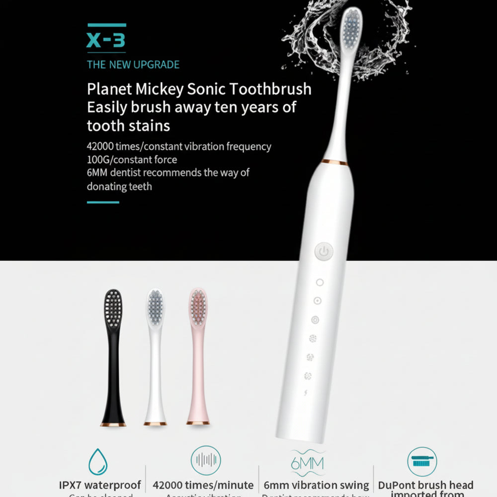 Upgrade your oral care routine with this sonic electric toothbrush designed for adults. Powered by high‑speed vibrations, it delivers effective plaque removal and a deeper clean compared to a manual brush. With its IPX7 waterproof rating, you can confidently use it in the shower or rinse it under running water without worry. Comfortable to hold and easy to use, this toothbrush helps you maintain fresher breath and healthier gums every day.