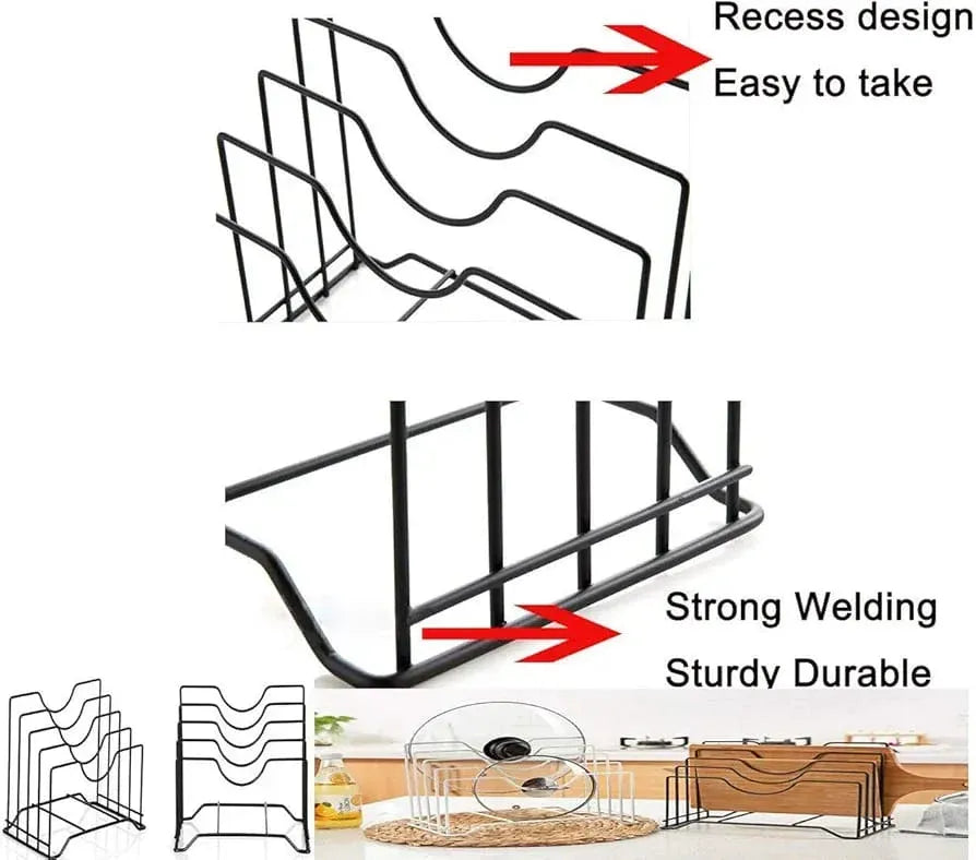 Space-Saving Design: Keeps pot lids organized and off countertops