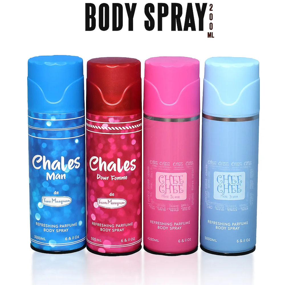 4 Perfumed Body Sprays: Chales Man, Chales Pour Femme, Pink Femme, Blew Man