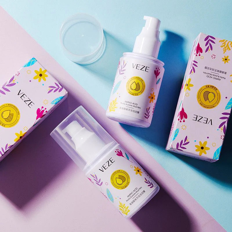 This 50-gram tub of VEZE Bubble Mud Film is a cleansing treatment aimed at revitalizing skin by deep-cleansing pores and removing built-up oil and impurities. Formulated with amino acids and perilla extract, the product offers a dual action: it foams gently to lift surface sebum and debris, and gives the skin a clean, smooth finish without harsh stripping.