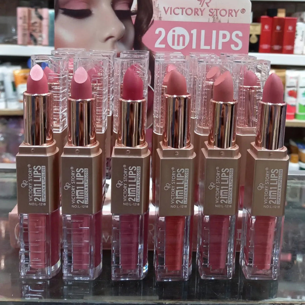 Achieve the perfect lip look with Victory Story 2 in 1 Lipstick + Matte Lipgloss. Dual-ended design offers a lipstick for bold color and a matte lip gloss for a long-lasting finish. Expertly formulated with high-quality ingredients, apply with confidence for a beautiful and professional look every time.