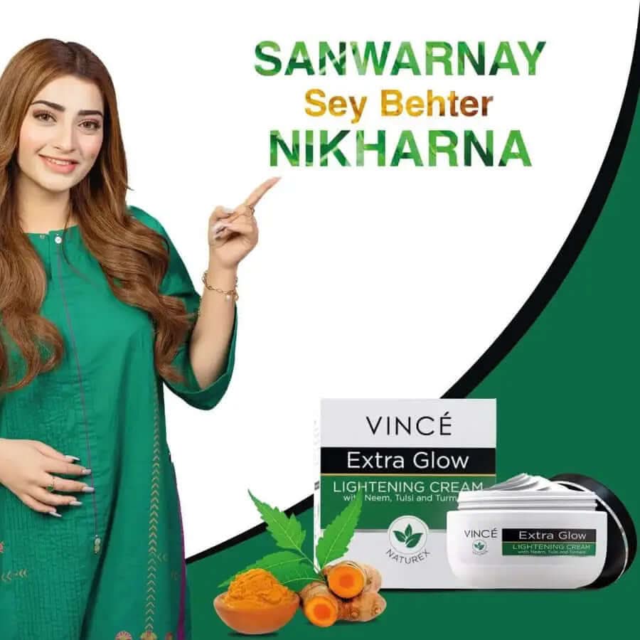Vince Extra Glow Lightening Cream is a perfect unique blend of Neem Tulsi and Turmeric gives essential nourishment to the skin, improves skin complexion and provides you with the baby soft skin. This unique natural fairness formula is easy to absorb, penetrates deep into your skin also helps to remove dark spots, blemishes, acne marks and brighten skin while giving you a light and healthy glow.