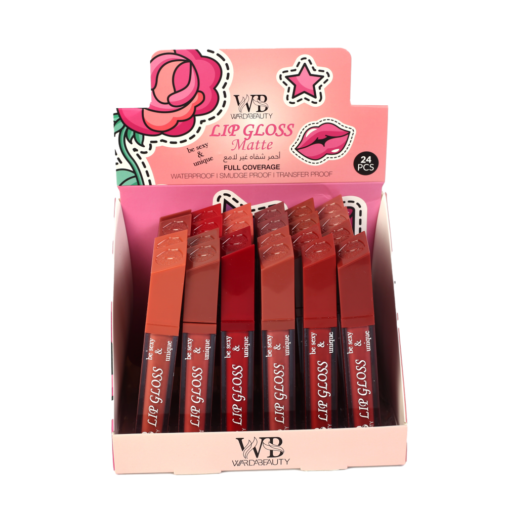 It appears Warda Beauty does not list a specific product named “Be Scary & Unique Lipgloss” within its current catalog. However, based on available listings and naming conventions, it's likely you're referring to one of their bold, matte lip gloss sets, often labeled with intriguing names like “Meat Matt Haghs” or packaged in thematic displays.