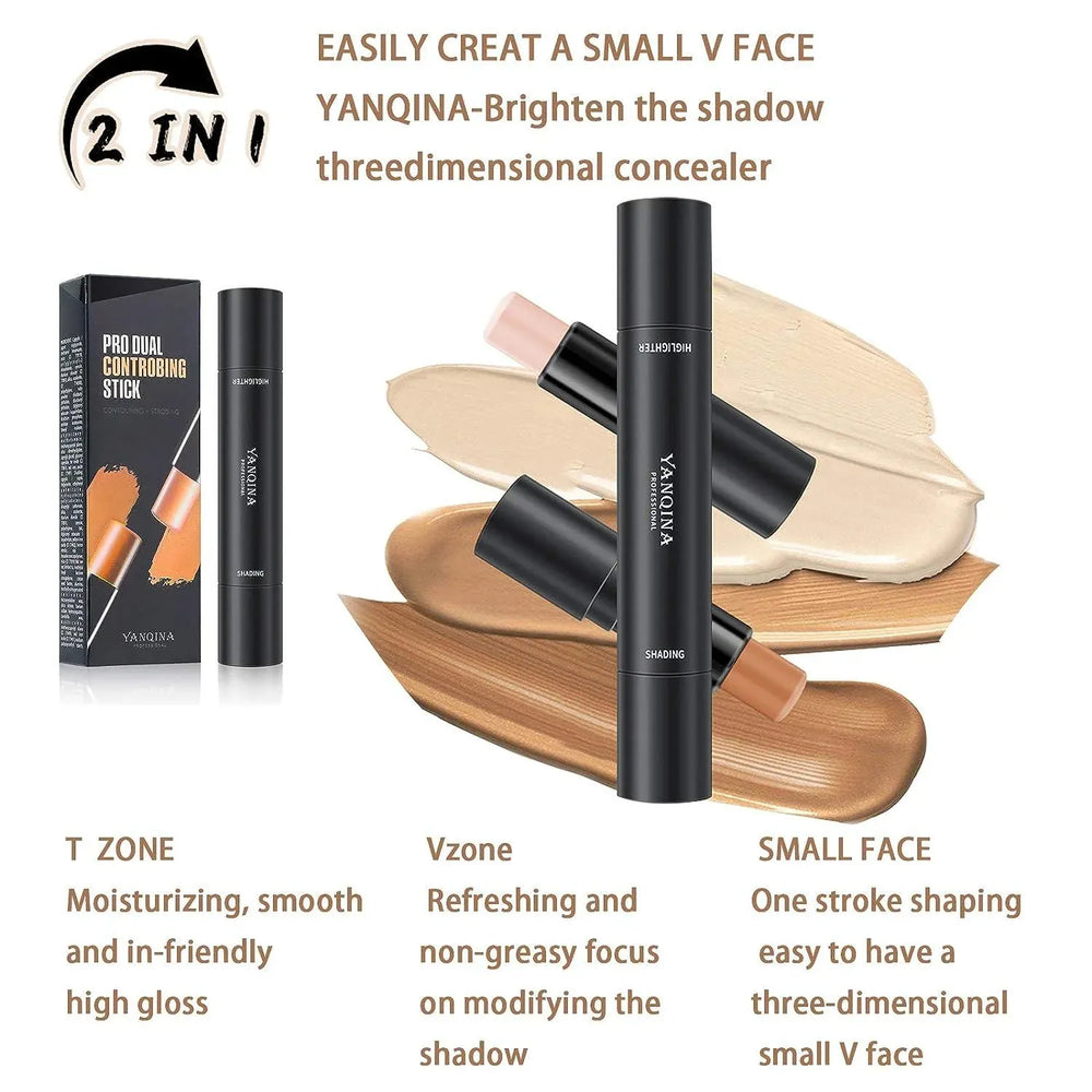 Define and sculpt your features like a professional with the Yanqina 2-in-1 Pro Dual Yan Stick. This double-sided wonder is a favorite for "on-the-go" makeup because it combines a creamy contour shade and a brightening highlight in one portable pen, allowing you to "draw" on your bone structure in seconds.