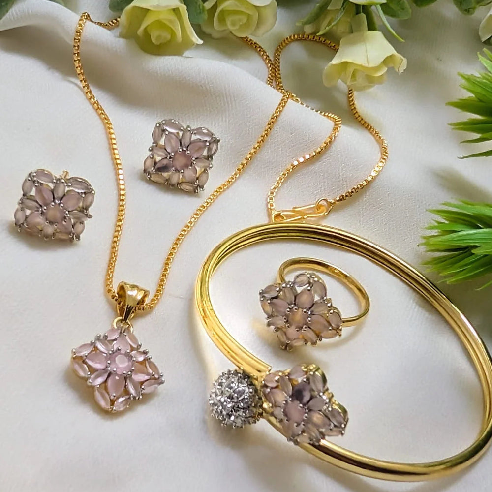 The set includes a matching ring and kara (bracelet), both designed with adjustable sizing for a comfortable and flexible fit. The intricate AD design ensures a radiant finish, making it perfect for weddings, parties, festive occasions, and special events.