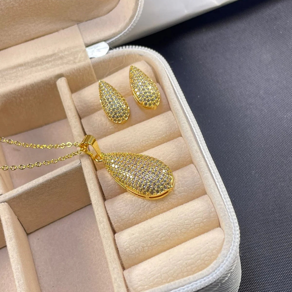Pair the Zircon Locket Set with formal attire for a polished evening look.