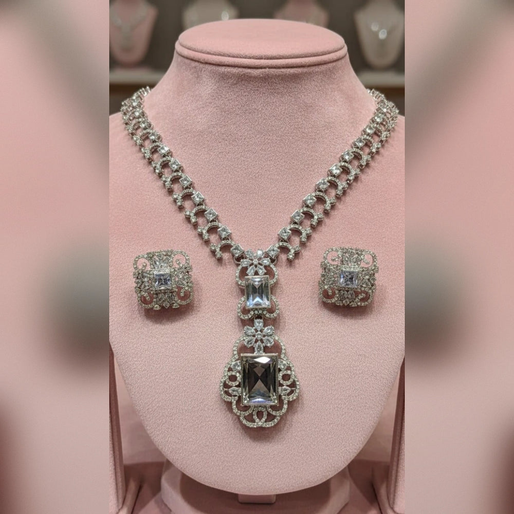 The Zircon Necklace and Earrings Set is a beautifully designed jewelry set that adds elegance and sparkle to any outfit. Crafted with shimmering zircon stones, this set offers a refined and luxurious look, perfect for both special occasions and formal events.
