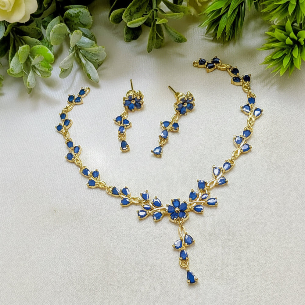 Elevate your style with this exquisite Zircon Necklace & Earring Set, crafted as part of a premium AD Jewelry Collection. Designed with sparkling zircon stones and finished in a rich gold polish, this elegant set offers a luxurious look perfect for weddings, parties, and festive occasions.